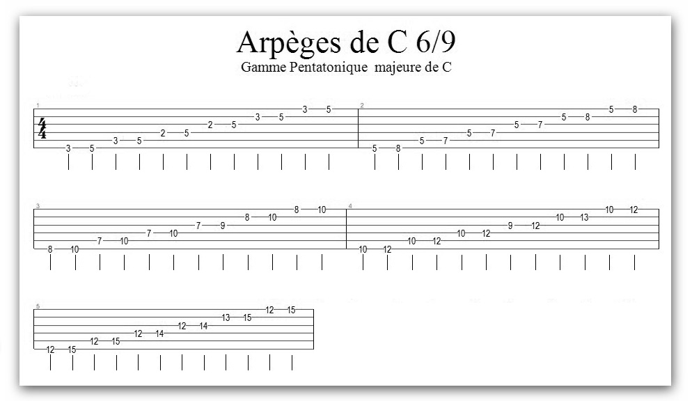 Tonique: C , Tierce : E , Quinte : G , Sixième : A et Neuvième : D