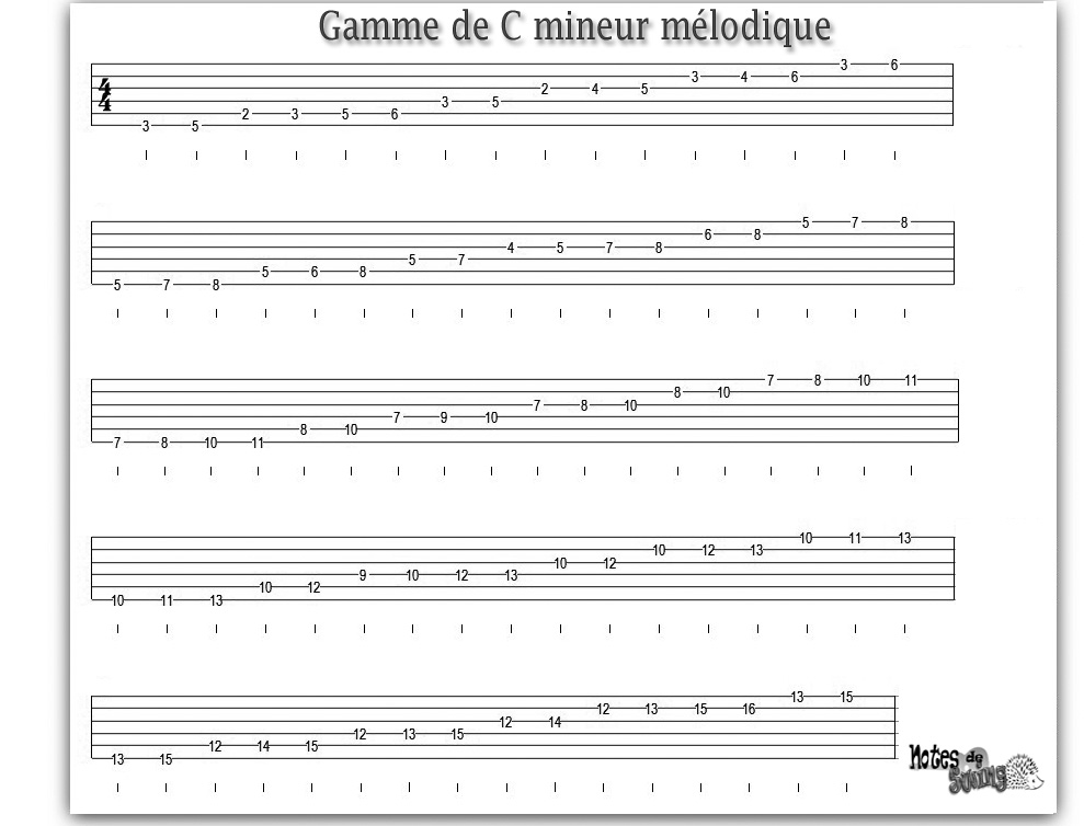 LA GAMME CI DESSOUS EST C MINEUR MELODIQUE.LES NOTES SONT: