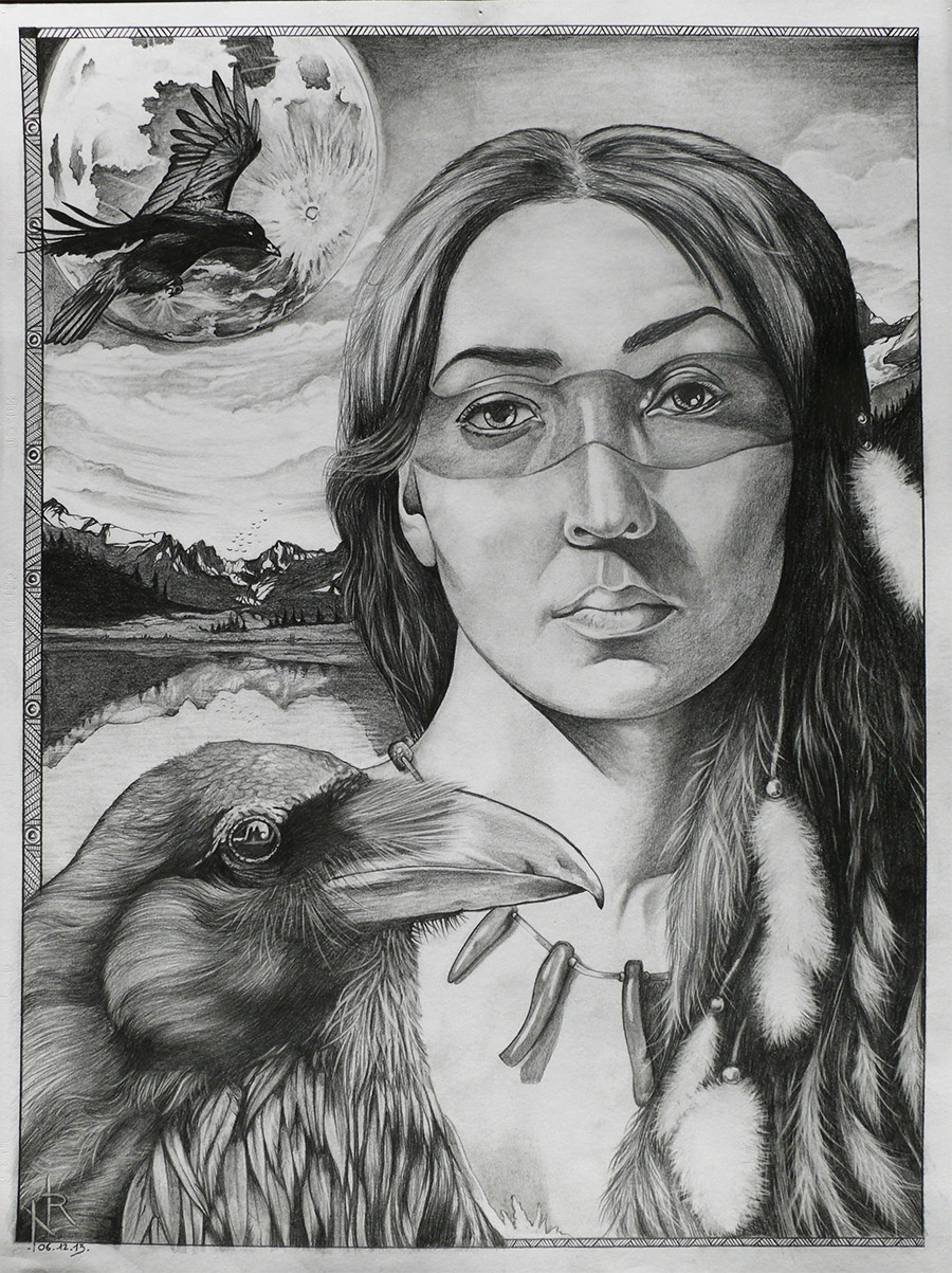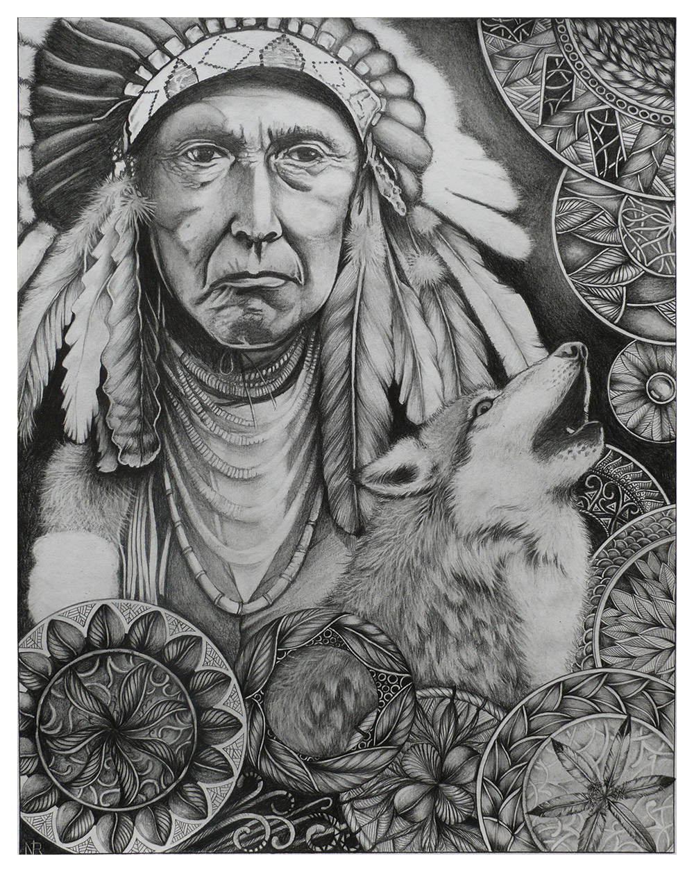 Et ça dépend aussi si j'ai une idée bien précise du dessin, comme celui avec le corbeau. j'avais fait un montage photo pour visualiser le rendu. Le tableau avec le loup était complétement improvisé. je suis parti de l'idée de faire un mandala et puis j'ai laissé le crayon décider .. j'avais une photo de loup qui trainait et j'ai cherché une photo de chef indien sur le net et j'ai essayé de "réunir " tout ça ... en ce moment je "travail" sur un dessin : Le jour et la nuit ...