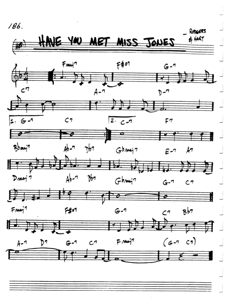 à noter que la mesure 11 (B-7) est souvent remplacée par F#-75b B7 un II V mineur qui permet d'introduire E-7