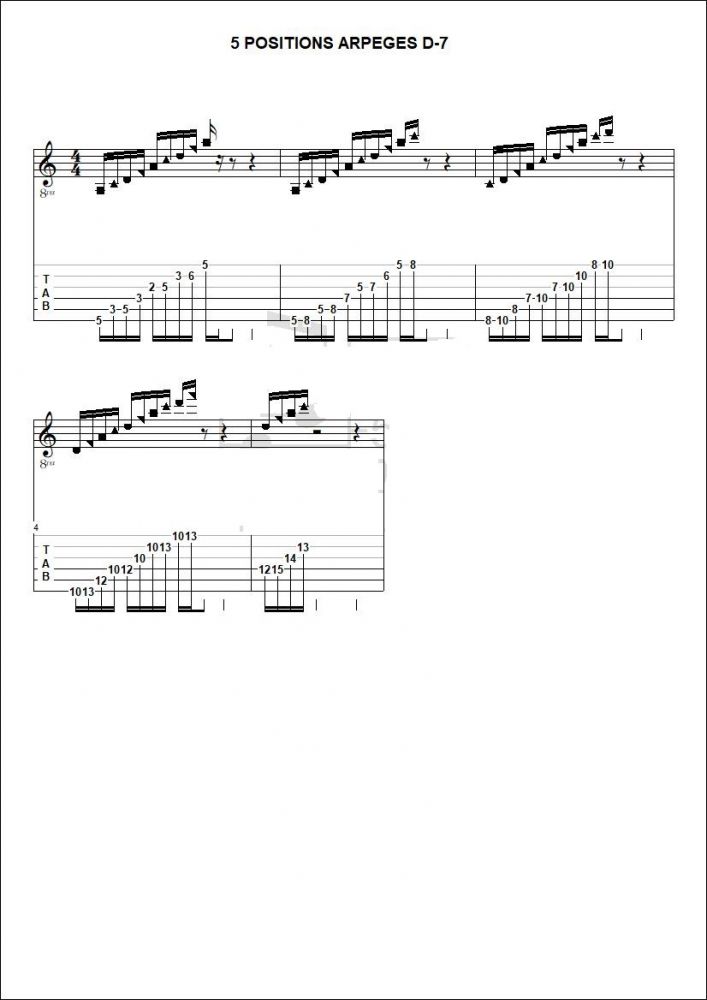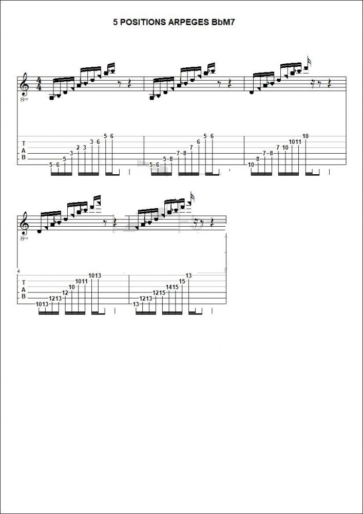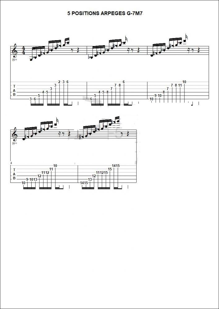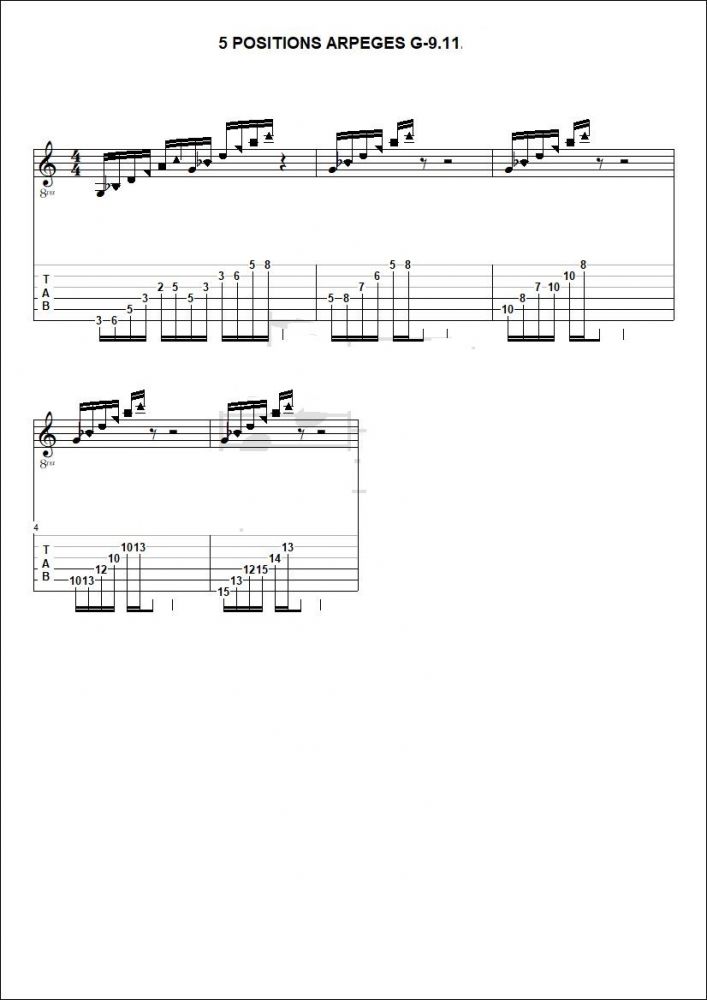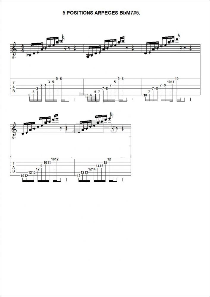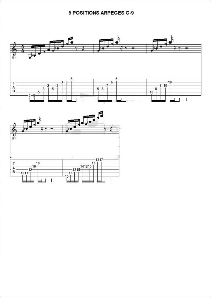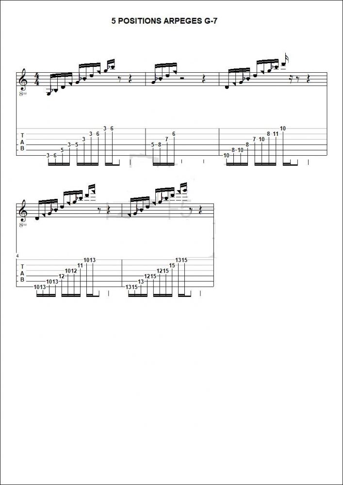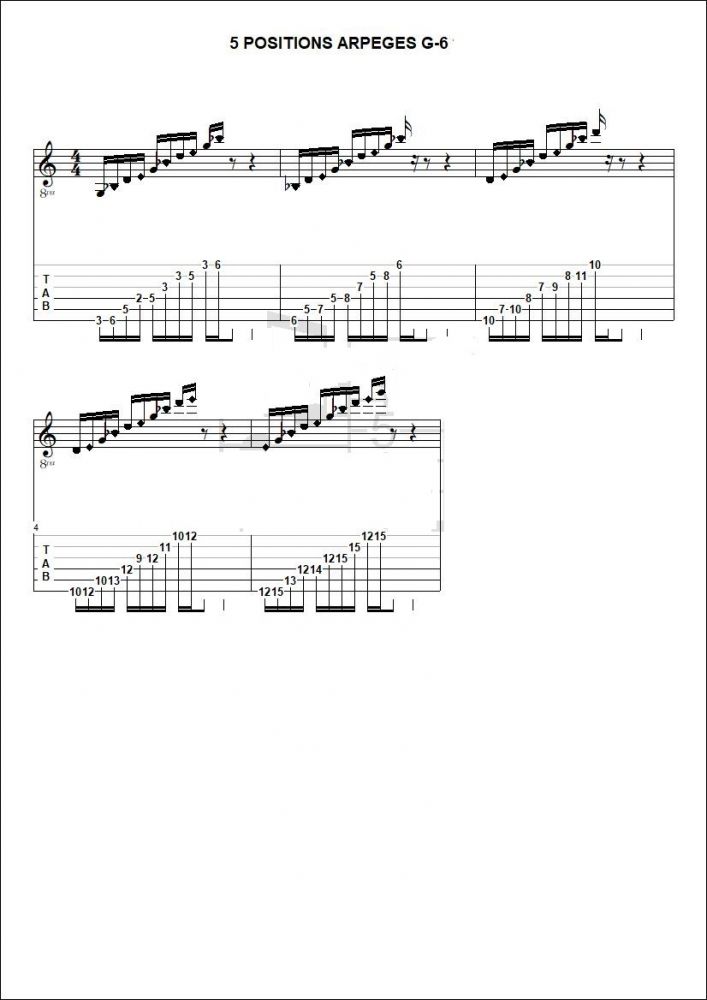 voici les cinq positions de l'arpège de G-6 (même doigté que l'arpège de E-75b)
