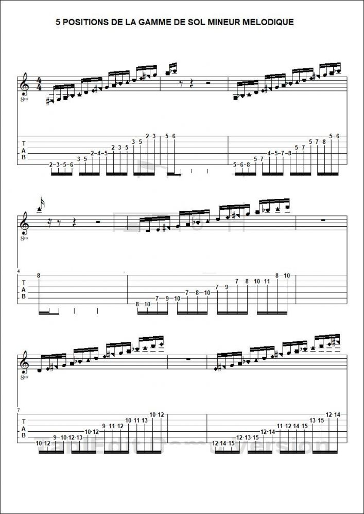 Sur l'accord de G-7 pourra aussi jouer la gamme de sol mineur mélodique