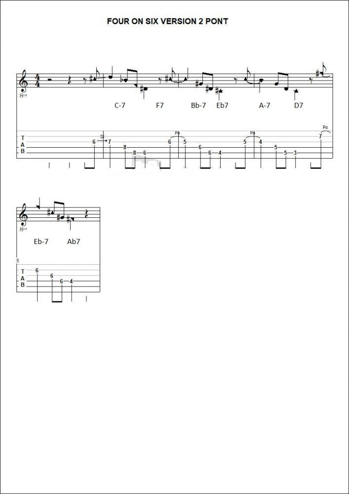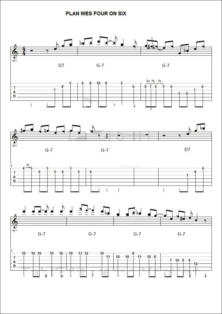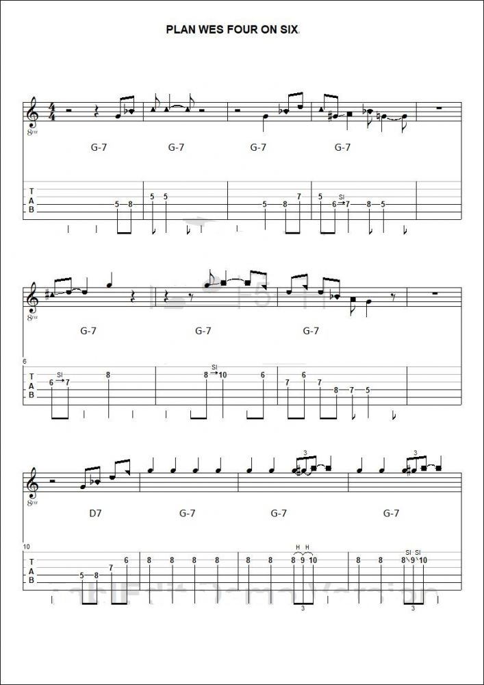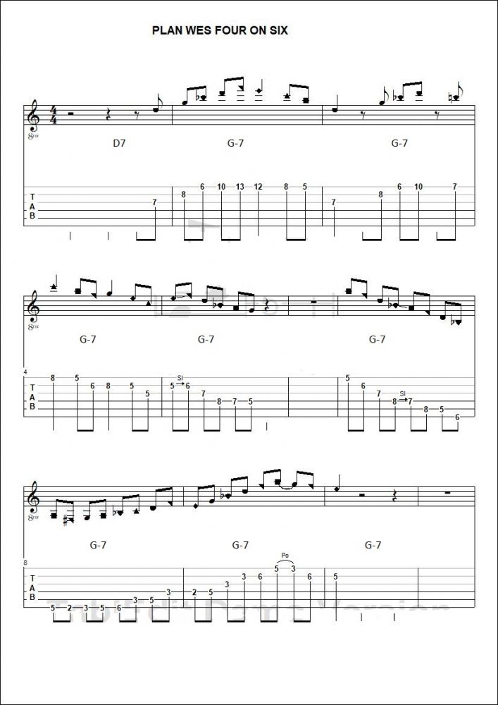 voici une série de plans joués par Wes Montgomery sur Four on Six (version the uncredible jazz guitar of Wes Montgomery)