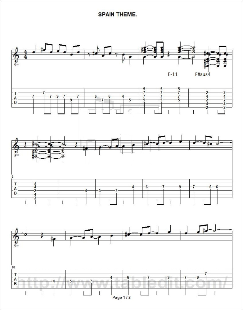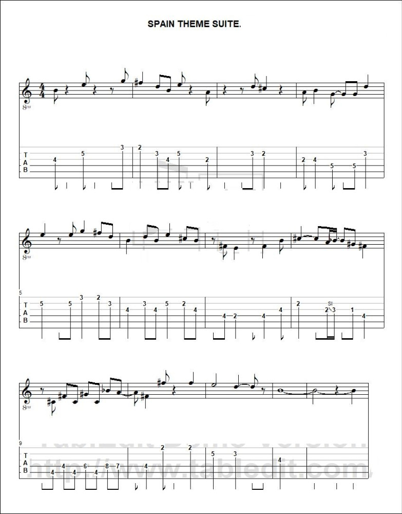 sur F#7 gamme de si mineur harmonique (pour garder le coté hispanisant du morceau on peut aussi jouer le mode de Fa# altéré ou bien la gamme demi ton /ton