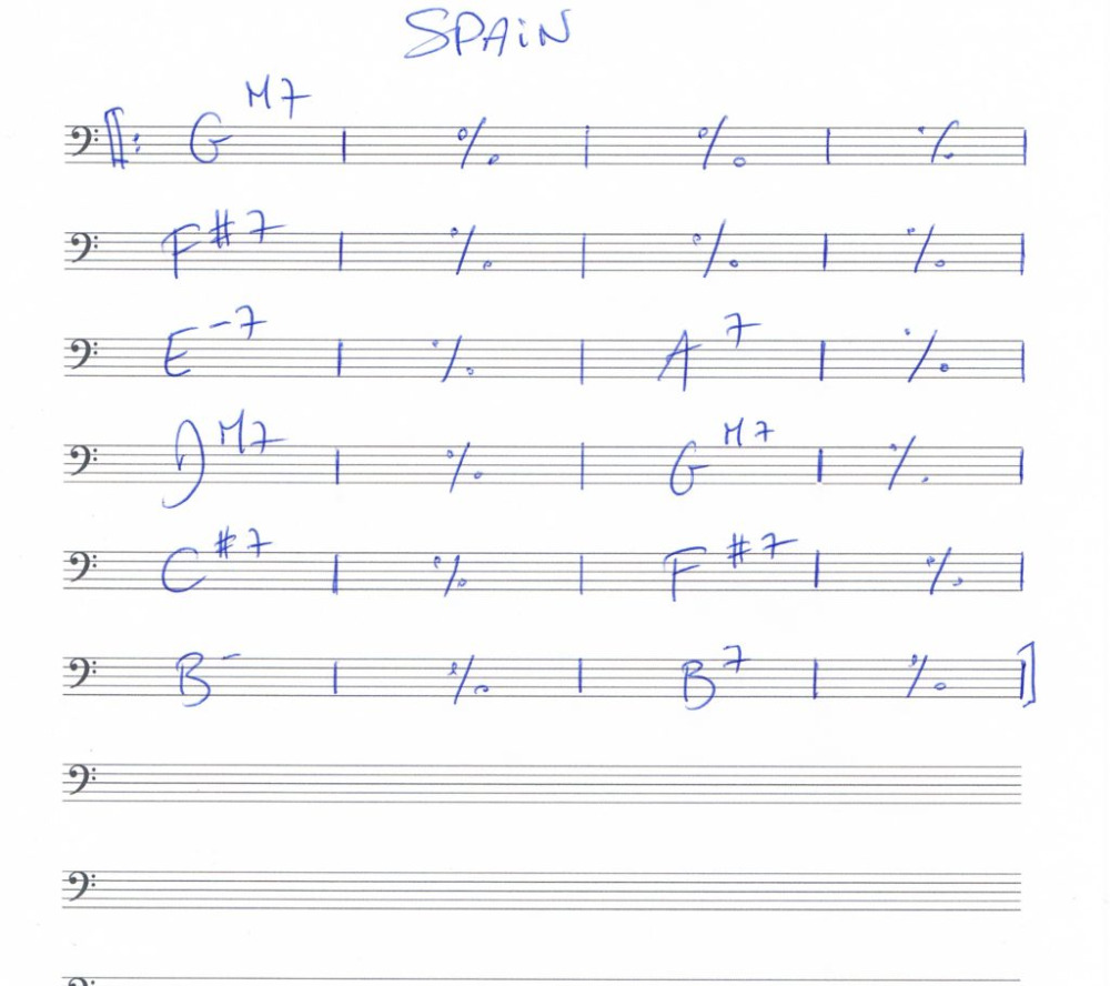GM7 IV (en fait c'est une substitution modale on a remplacé E-7 par GM7 qui sont deux accords relatifs)