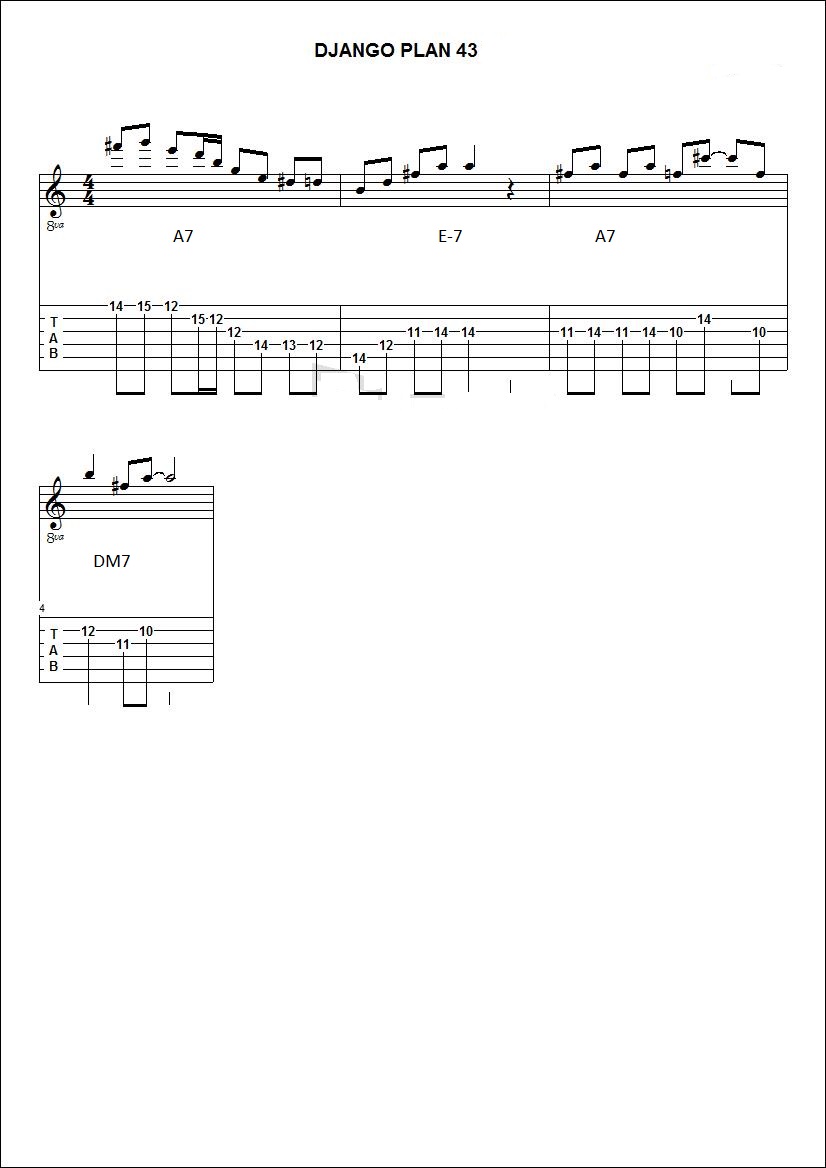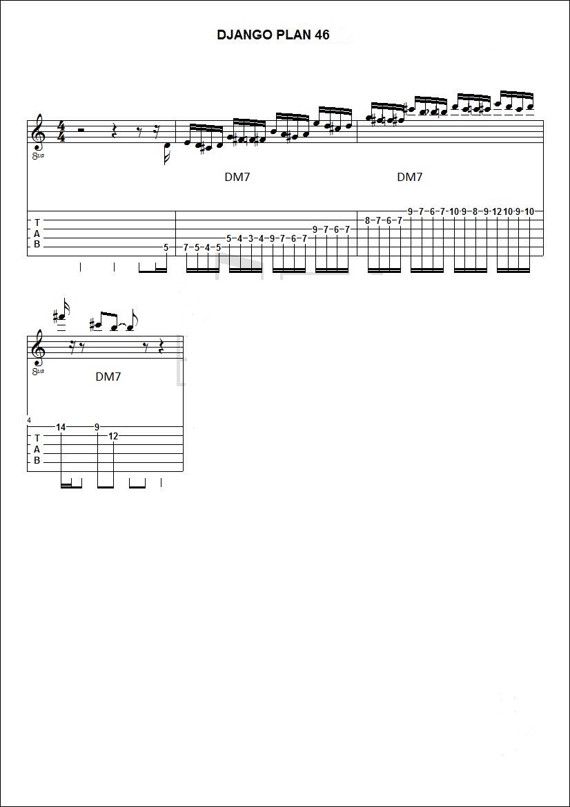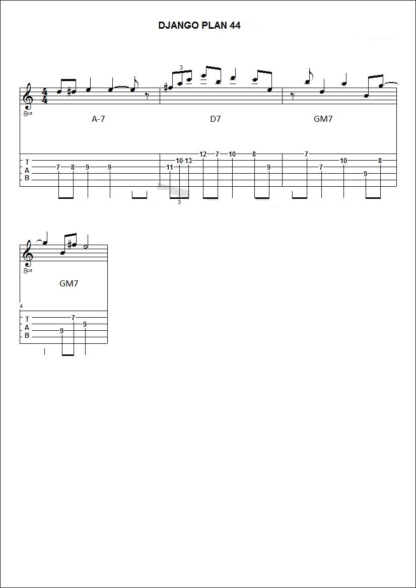 Sur GM7:utilisation des notes de l'arpege jouées avec des saut de cordes le plan termine encore sur la sixte (mi)