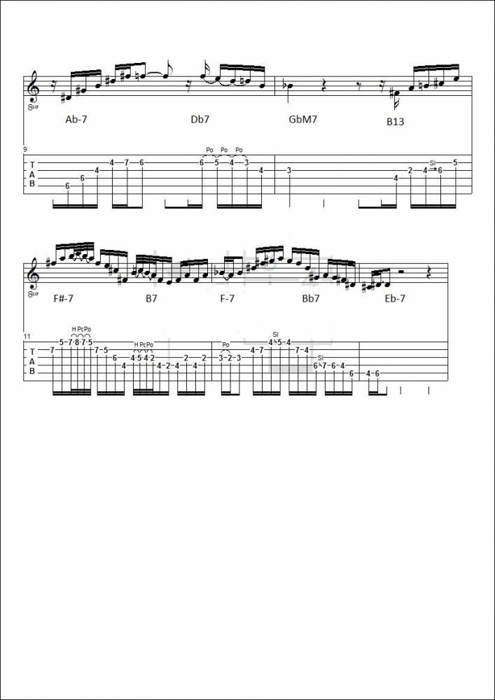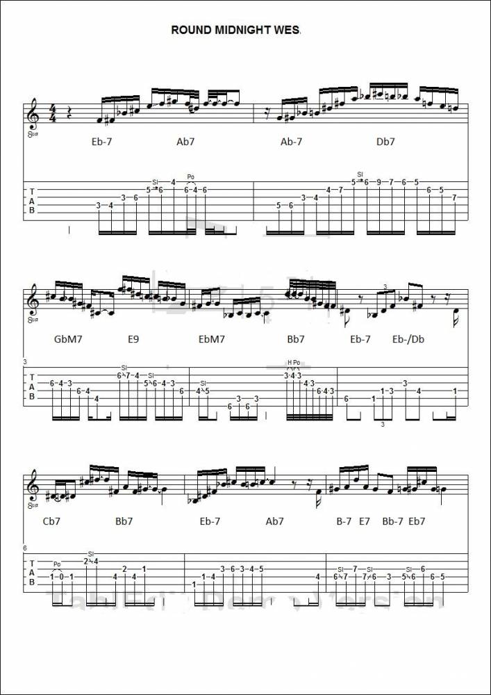 sur E9 (substitution de Bb7 car on arrive à la mesure suivante sur EbM7 ) Wes joue Ab- et vient résoudre sur la tierce de EbM7 (sol)