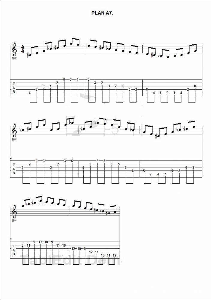 voici un plan à placer sur un accord de A7 (utilisation des cordes à vide)