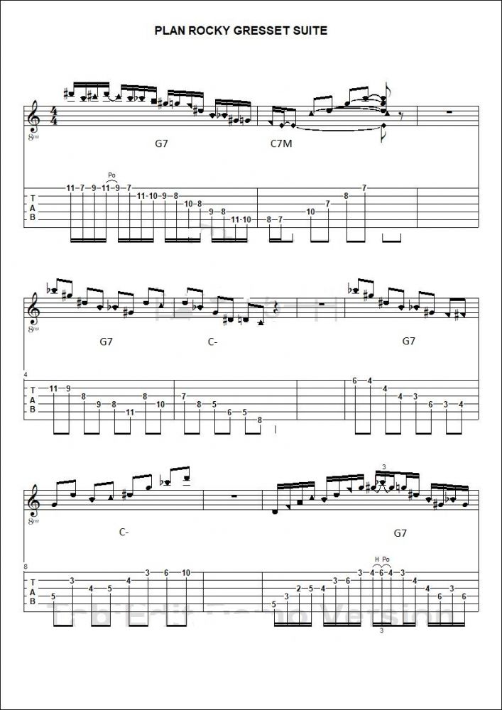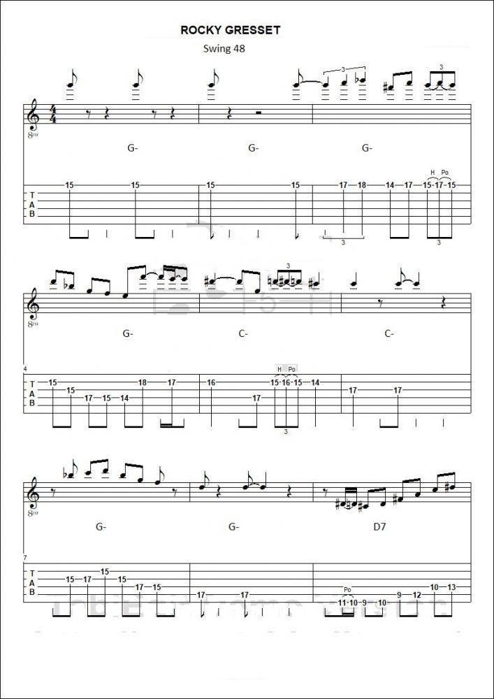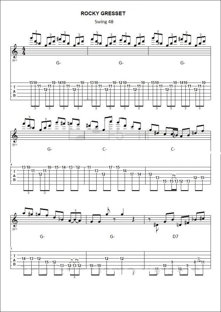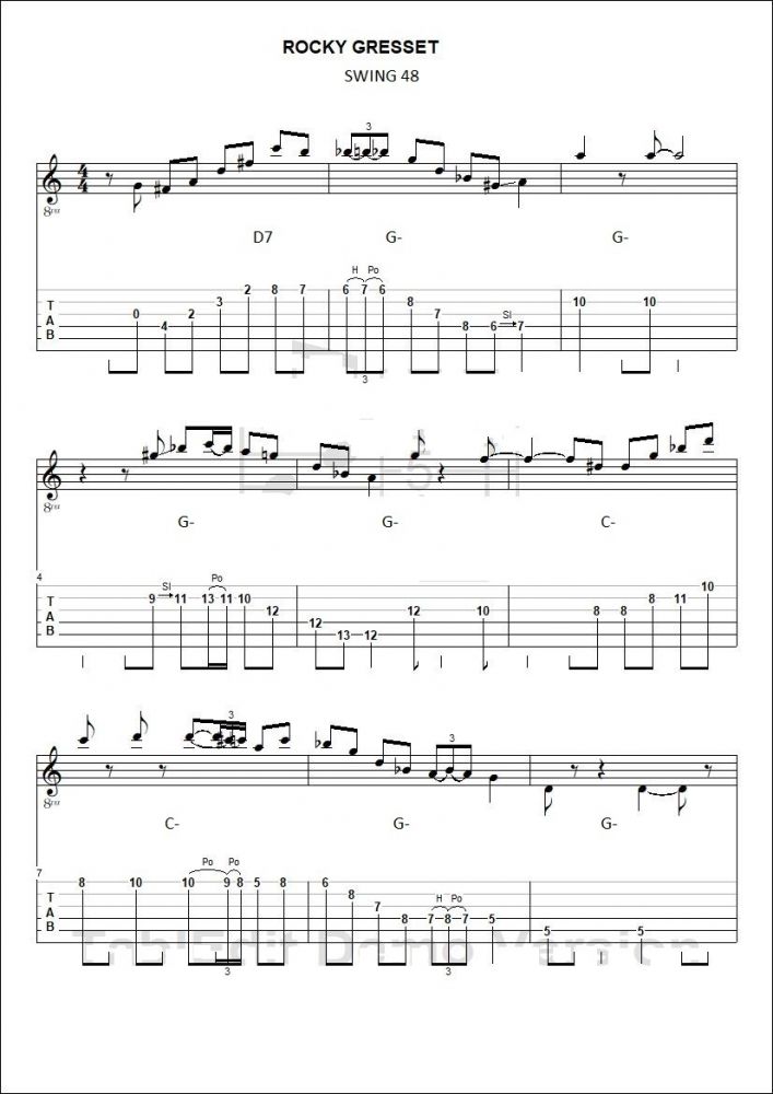 sur les accords de septième de dominante Rocky Gresset va mélanger gamme mineure harmonique, gamme mineure mélodique ainsi que les arpèges diminués