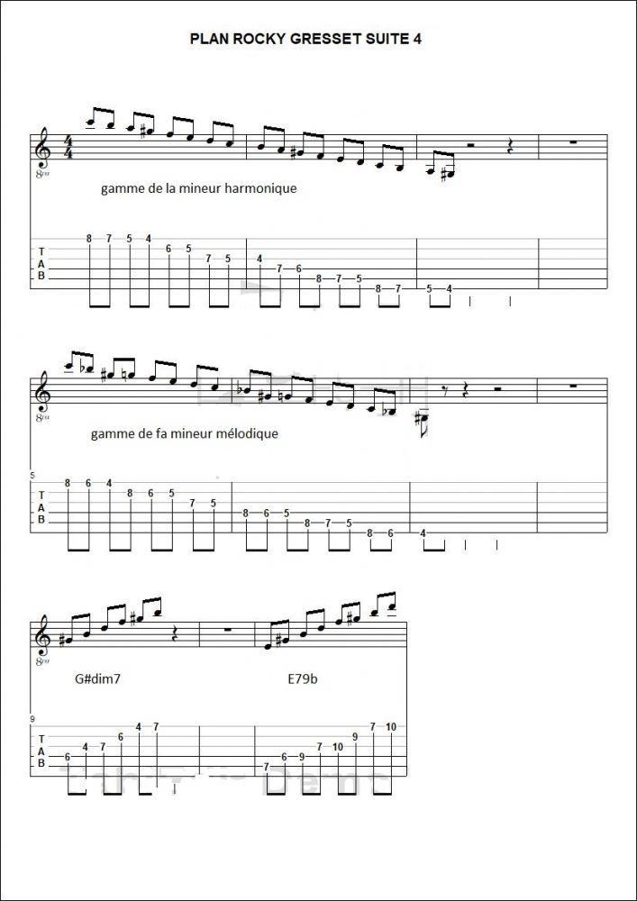 troisième plan:sur E7 gamme de la mineur harmonique et gamme de fa mineur mélodique sur A- triade de A- et sixte en fin de plan