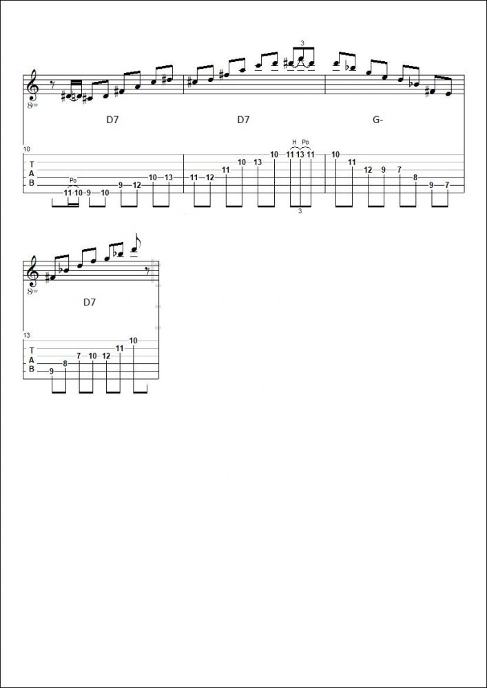 dans nos exemples Rocky joue sur un G7 on utilisera le mode altéré de G qui est issu de la gamme de Lab mineur mélodique