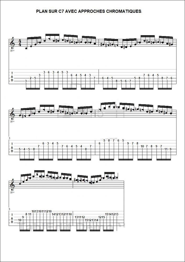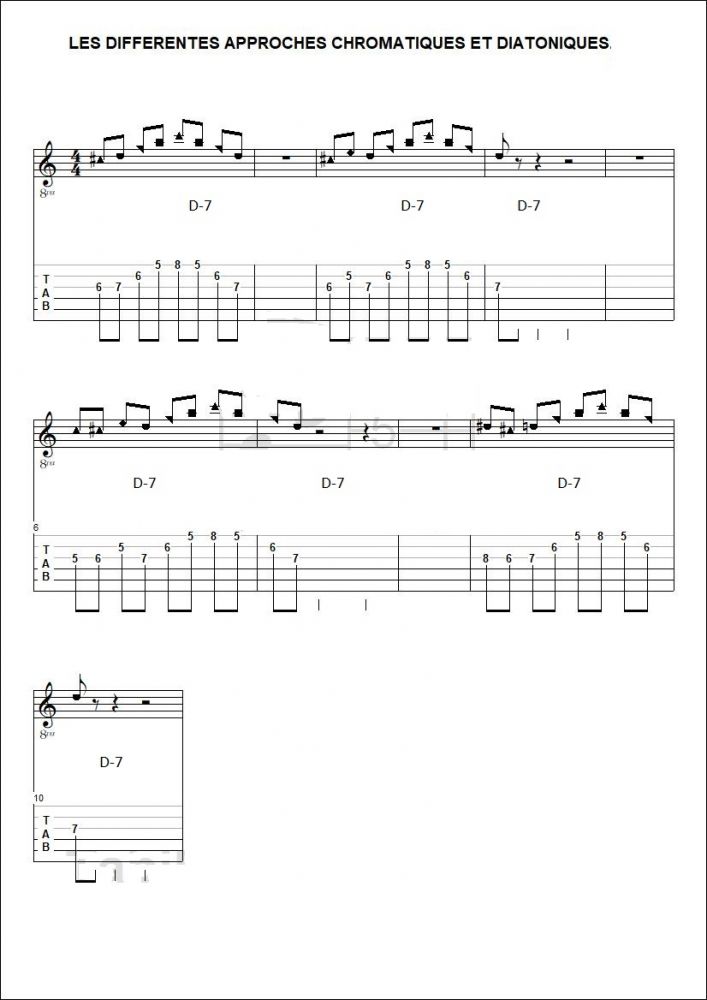 voici quelques exemples d'approches chromatiques et diatoniques sur un arpège de D-7
