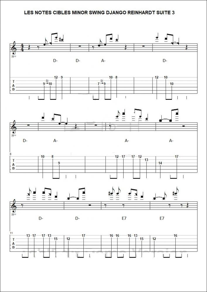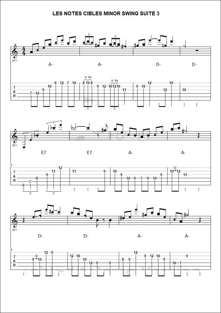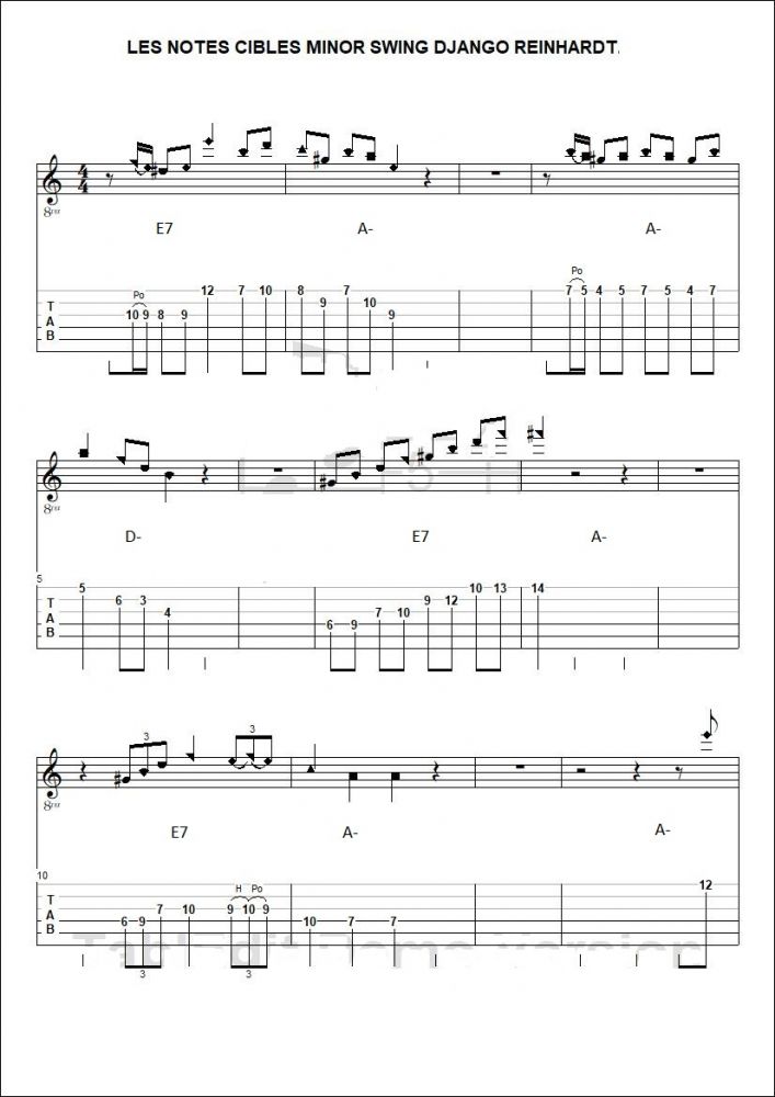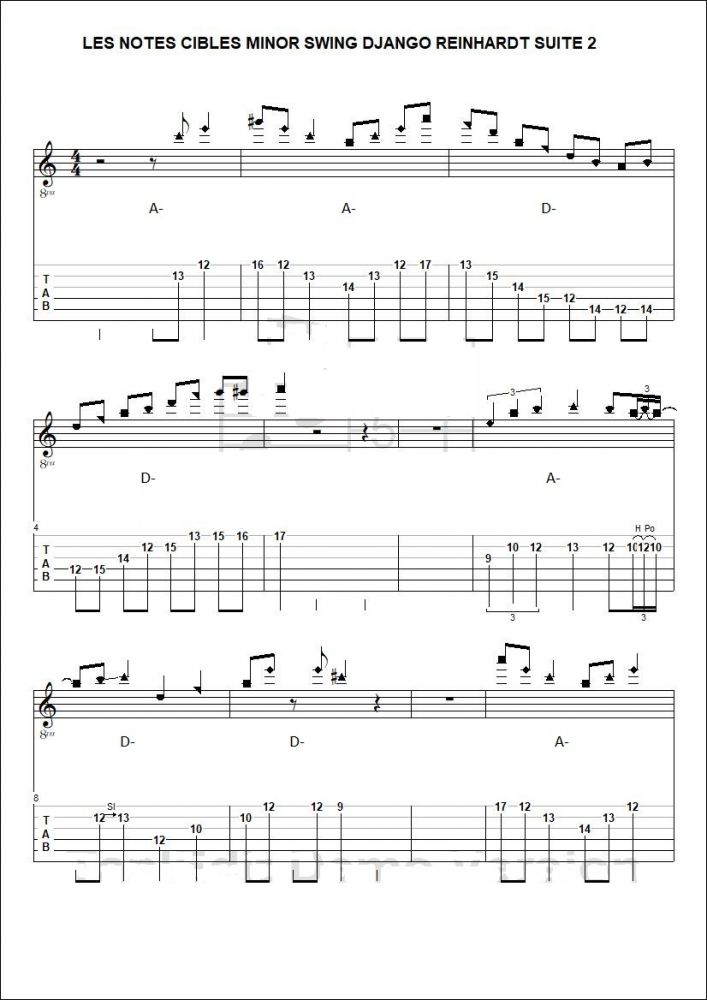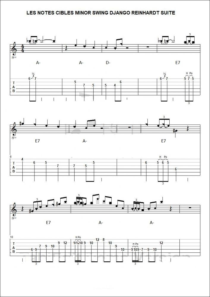 on va maintenant prendre des plans sur les différentes versions de Minor Swing enregistrées par Django et voir comment on retrouve les notes cibles