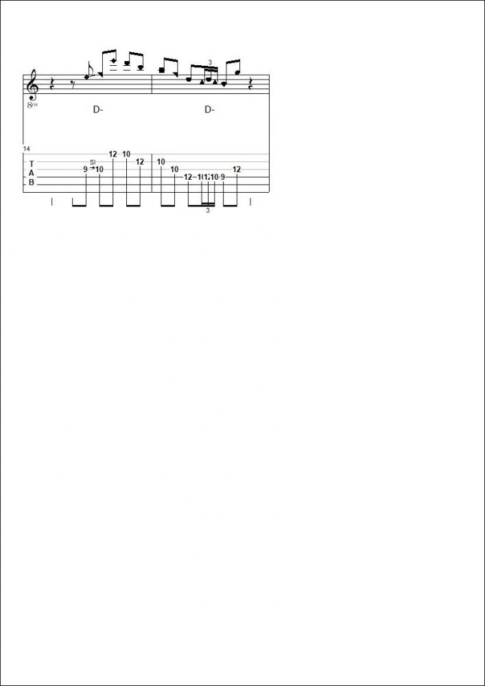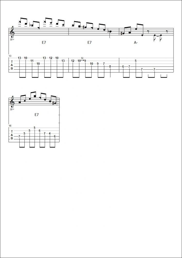 Exemple 1 mesures1,2,3:bend pour arriver sur la neuvième de A- (si),sur D- on arrive sur la septième mineure (do) puis il joue sixte (si) et tierce (fa)