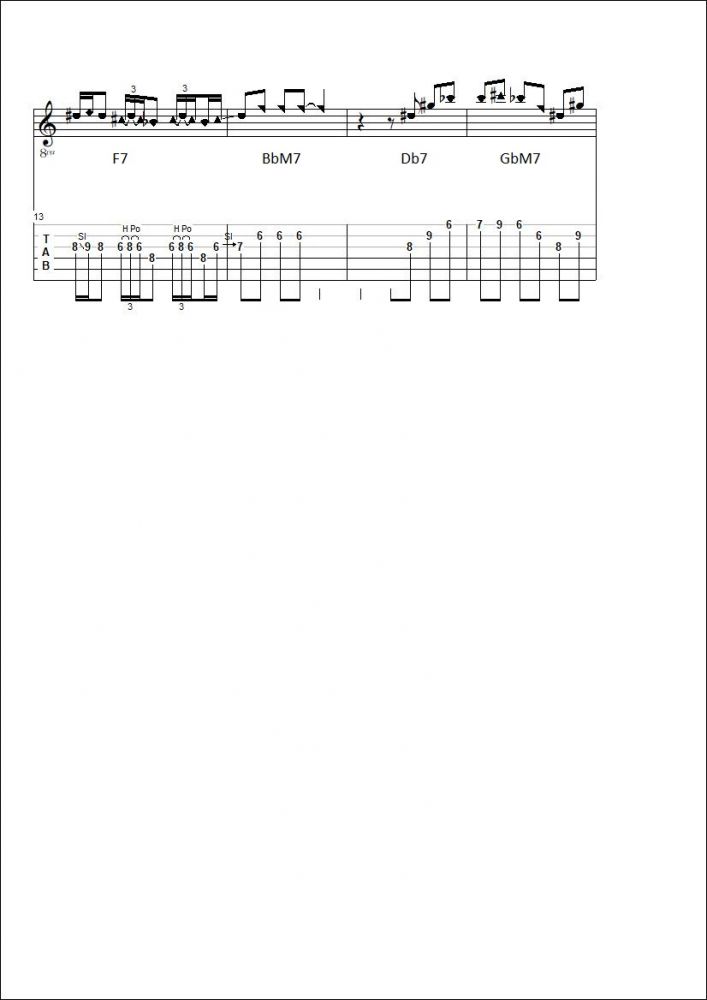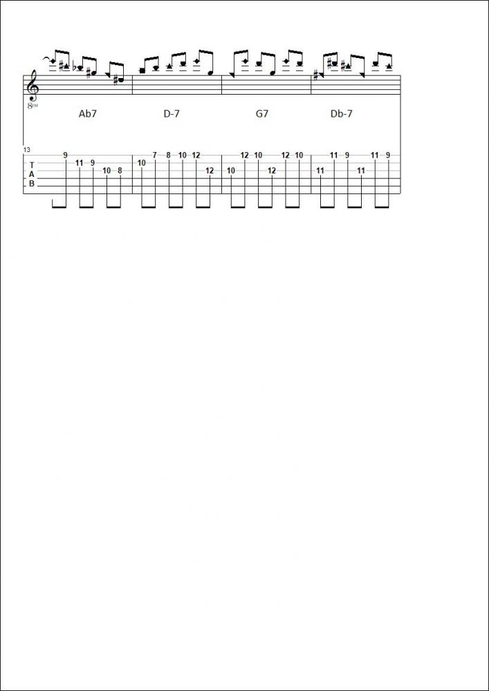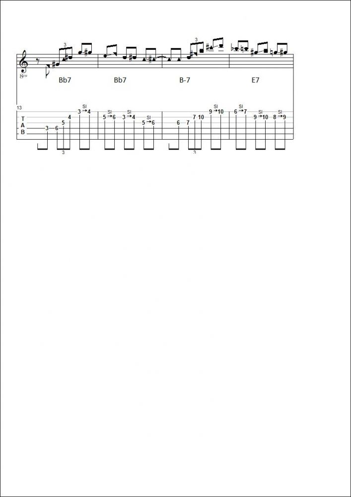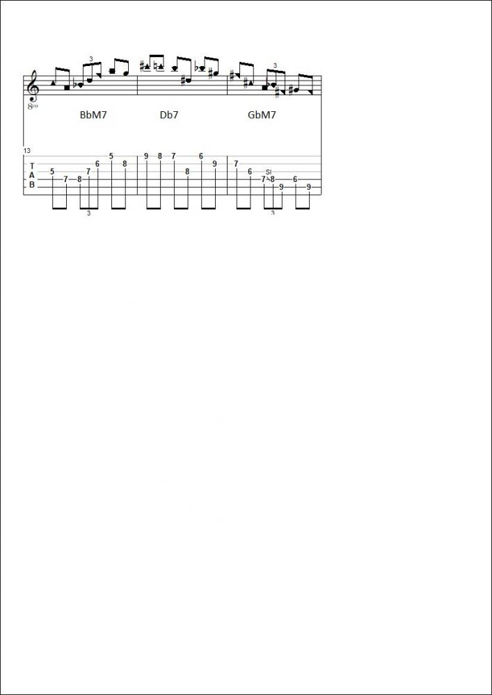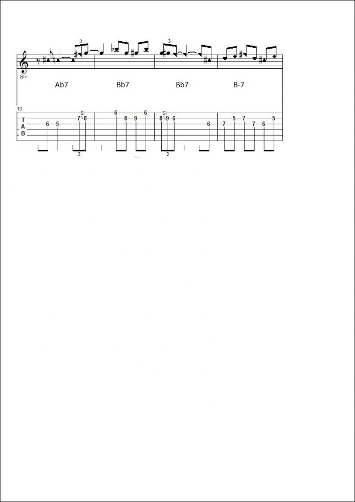sur les 1 eres mesures il joue Bb penta blues, ensuite sur Ab7, il joue un arpège de Ab9 sus ( ou Ebm/Ab ) et après j'ai décroché